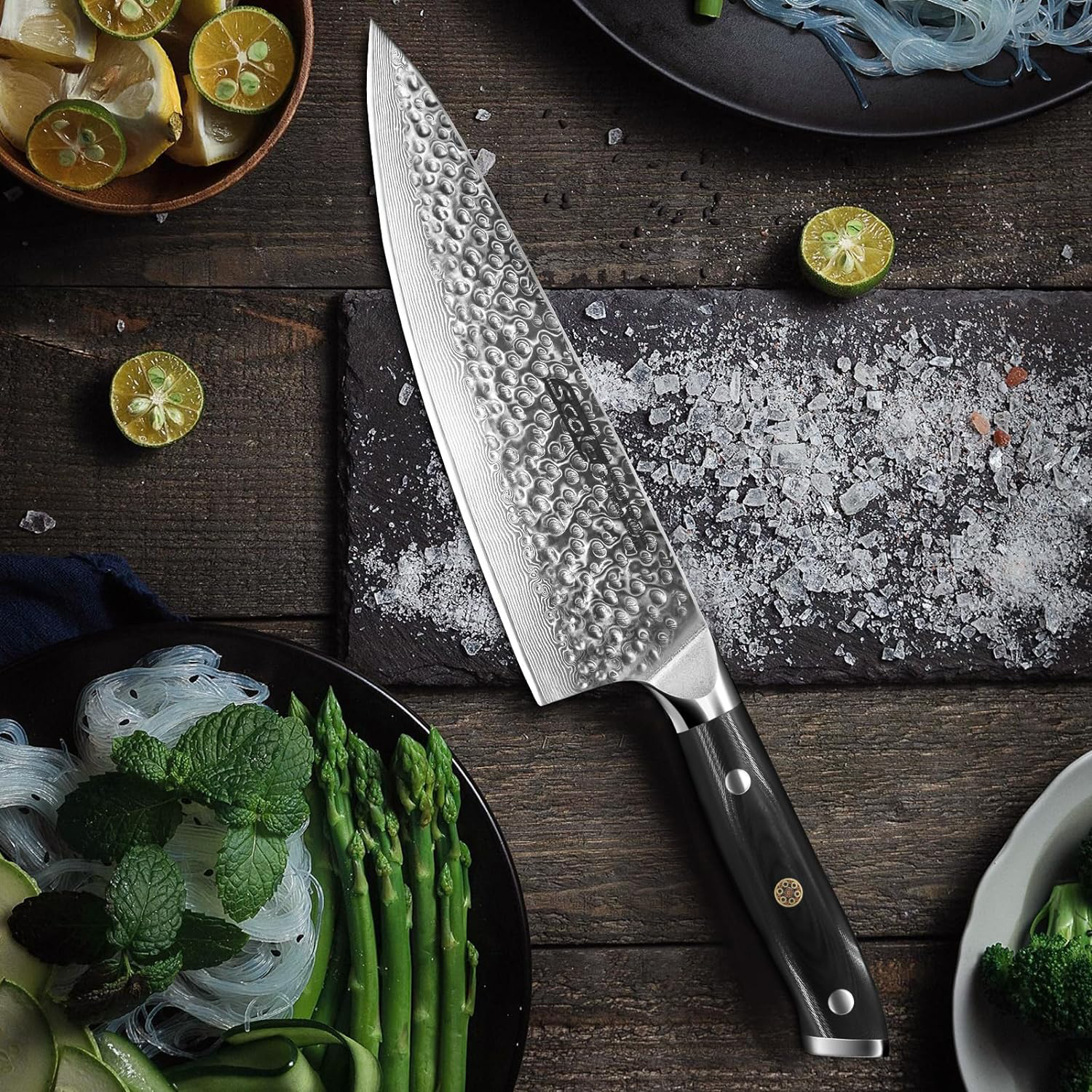 The KD Damascus Elegance Chef's Knife is perfect for both professional chefs and home cooks alike. Its 8 VG-10 Japanese steel blade is designed for sharpness and durability. while its Damascus pattern adds an elegant and sophisticated look. The gift box containing the knife is perfect for special occasions.